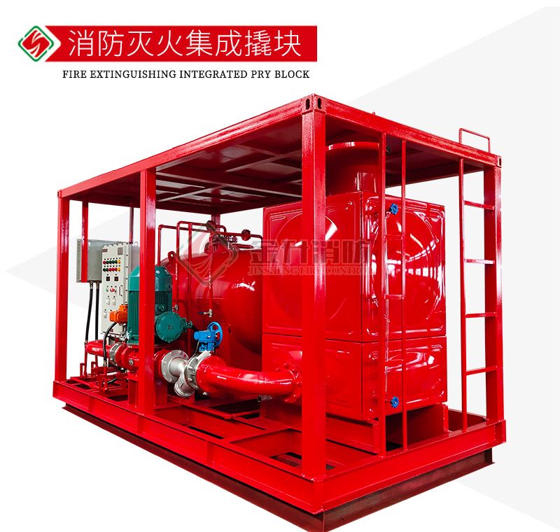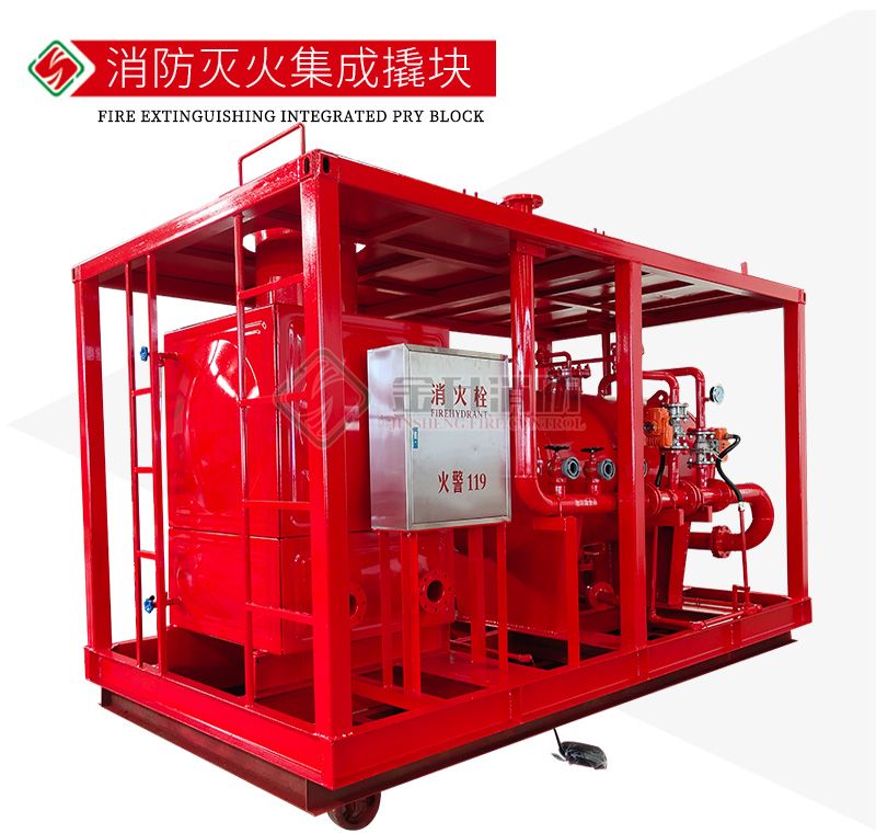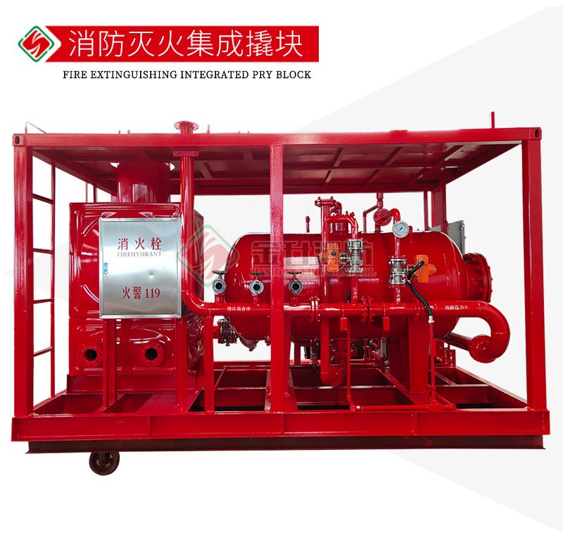 消防滅火集成撬塊主要有供水系統(tǒng)、比例混合系統(tǒng)、消防水箱、泡沫產(chǎn)生裝置、控制柜、閥門及管道組成。消防滅火集成撬運(yùn)輸方便,可使用在鉆井裝置區(qū)、鉆井營房、海上鉆井平臺等。滅火撬可以按照用戶需求定制。