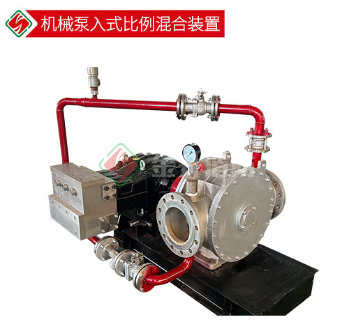 機械泵入式比例混合裝置由撬裝部分 (無泄水水輪機、泡沫液泵) 、常壓泡沫液儲罐、控制系統(tǒng)三部分組成。